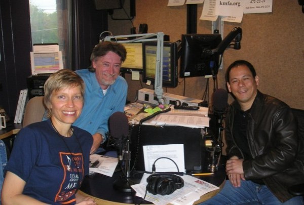 Mr. Tsang visited us on Wednesday morning. He chatted with hosts Jeffrey Blair and Sara Hessel, and while they were all on the air, he told us that he and his wife and children all enjoyed listening to KMFA at home, and emphasized how lucky Austinites are to have a full-time classical music radio station, commercial free. 🙂