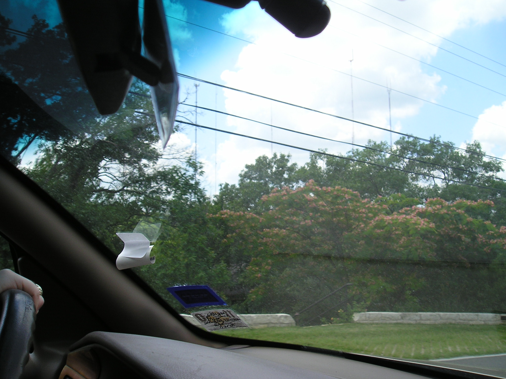We all piled into a hot car and braved the sunshine as we headed out to the wilds of Westlake Hills. After maybe half an hour of winding roads and great views, we arrived. Standing outside a grey block of a building, we were right at the foot of our tower, towering over us at about 1100 feet. Around us were several other structures, belonging to various T.V. and radio stations, with their cables stretching out into the foothills and their lights blinking above us.