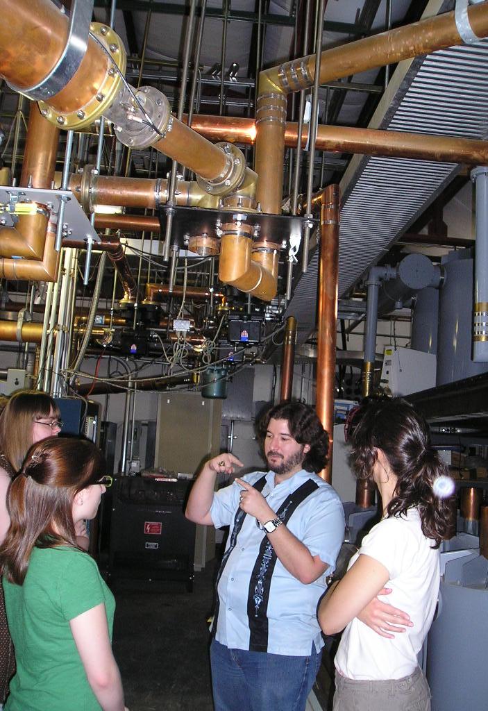 Inside the building, an A/C unit roared loudly while copper pipes and metal coils ran all along the ceiling. Front and center was our KMFA control center. Neatly separated into 4 large metal boxes, the transmitters blinked continuously while Phil explained each knob and button. We had two transmitters: the main and the auxiliary, as well as what we  dubbed the “miscellaneous rack,” which contained all the communication equipment connecting this far-off building to our downtown studio. The rest of the boxes, resembling large metal cabinets, contained the power supply that keeps us up and running.