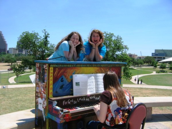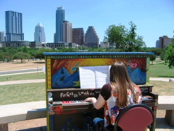 You can read more about this effort, as well as see some adorable photos and videos, at the website “Play Me I’m Yours.” They also have a map where each of the pianos is located. Go find one this weekend! 🙂 You’ll be surprised how nice a piano sounds outdoors in Austin’s wonderful springtime weather.