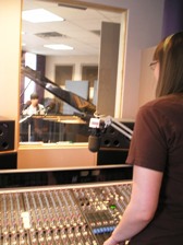 Producer Sarah Addison governs the sound board while Dr. Joyce Wu performs
